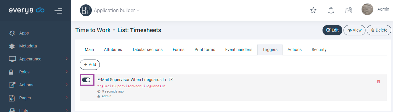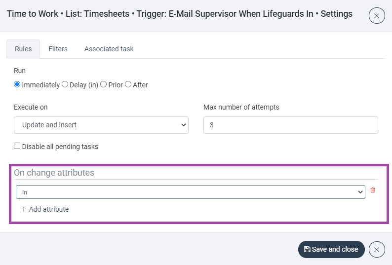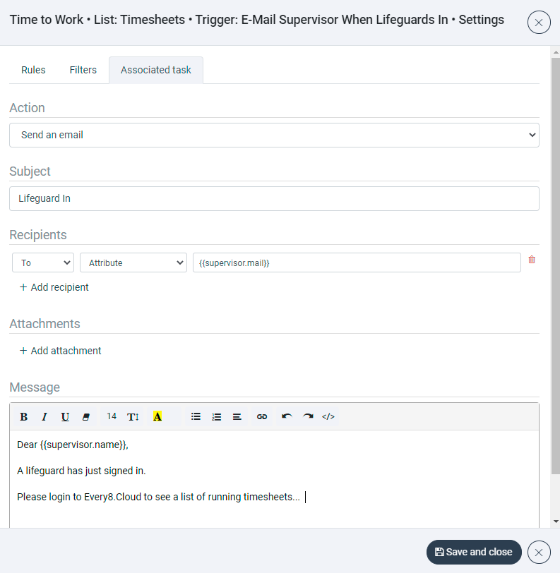 In this example (with the pool company), we could set up a trigger in Time to Work that would e-mail a supervisor when lifeguards clock in: