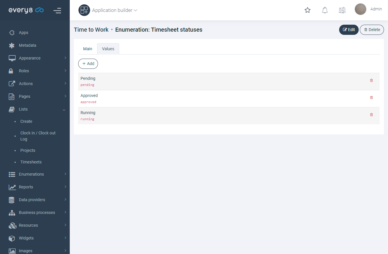 For example, the “Status” bullet we added in our original list (has a given timesheet been approved?) can be an enumeration: